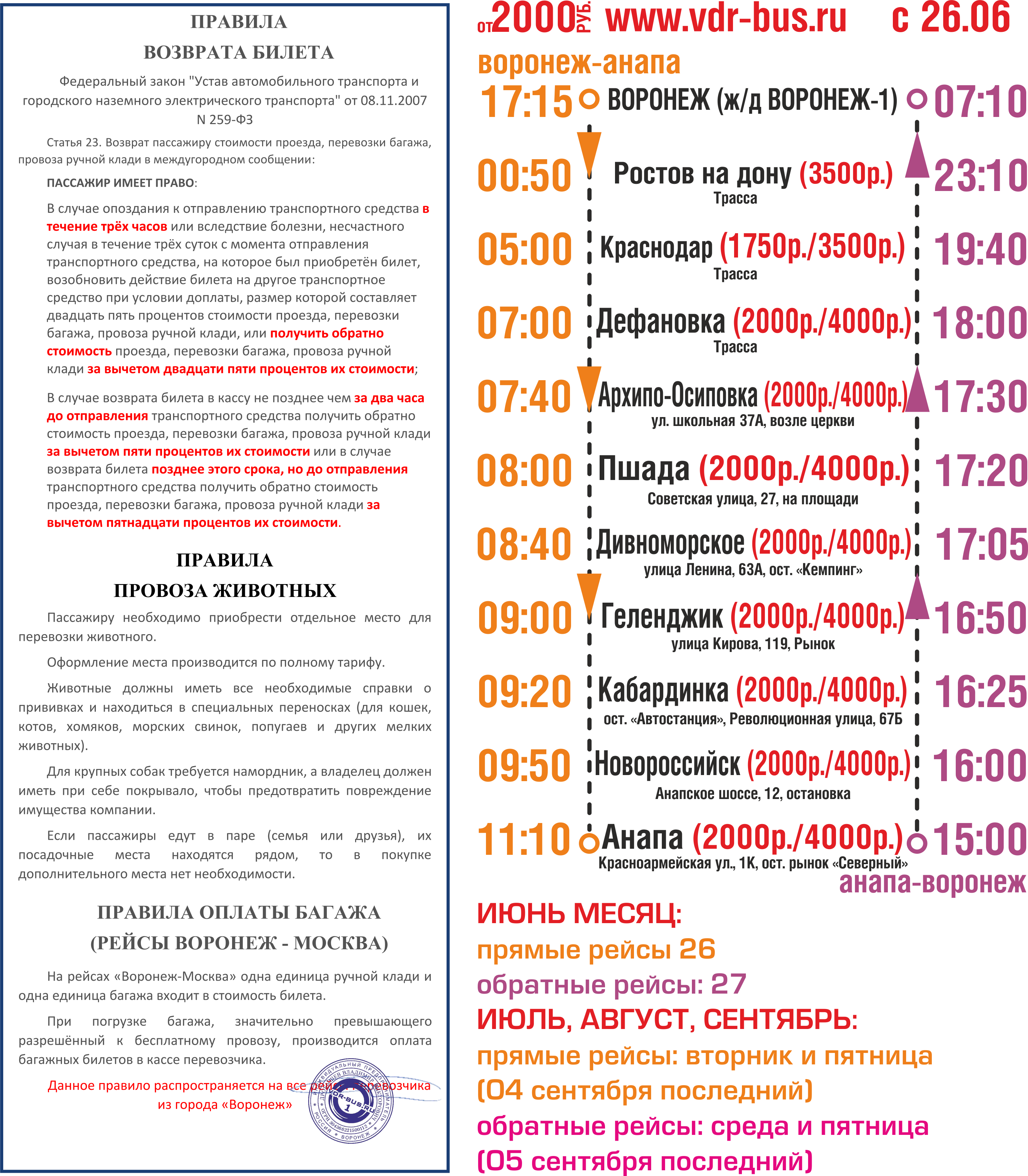 Дорогие Друзья! С Вам что рейсы Воронеж-Анапа-Воронеж уже в продаже. Стоимость проезда составляет 4000 рублей.